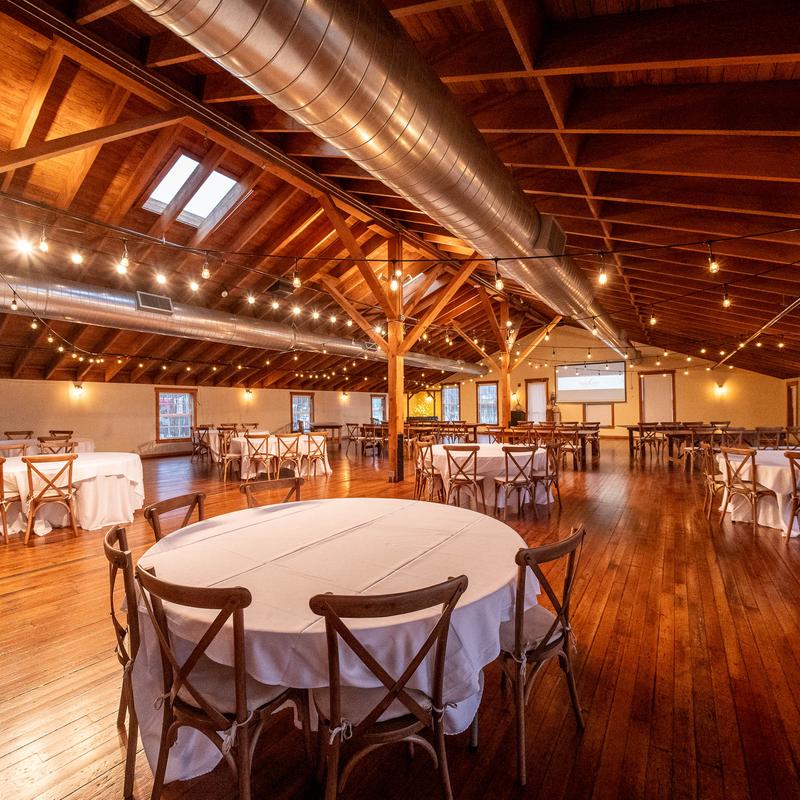 This is a great space for almost any venue. Whether it be for prom, a wedding, a large business luncheon, the Loft at the Red Building can handle it. The timber interior gives it a warm and personalable feel to it, and the view of the river is great. It is accessed by stairs, but there is an elevator for those that need it. Restrooms are just outside in the hallway.