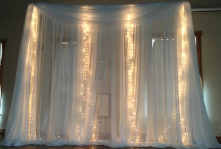 Elegant, 4-panel ceiling draping kit with optional starlight lighting.